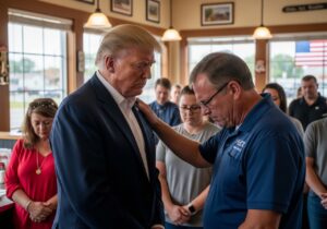 It happened in the heartland—where faith still matters and people actually believe in something bigger than TikTok trends and gender pronouns. President Trump walked into The Machine Shed restaurant in Iowa, and what happened next wasn’t staged, wasn’t political theater—it was raw, real, and powerful. A man walked up to President Trump and didn’t ask for a selfie or try to go viral. He asked if he could pray over him. And Trump, without hesitation, said yes. Right there in the middle of the crowd, in the middle of lunch, in the middle of noisy America—everything stopped. A man laid ...Continue reading