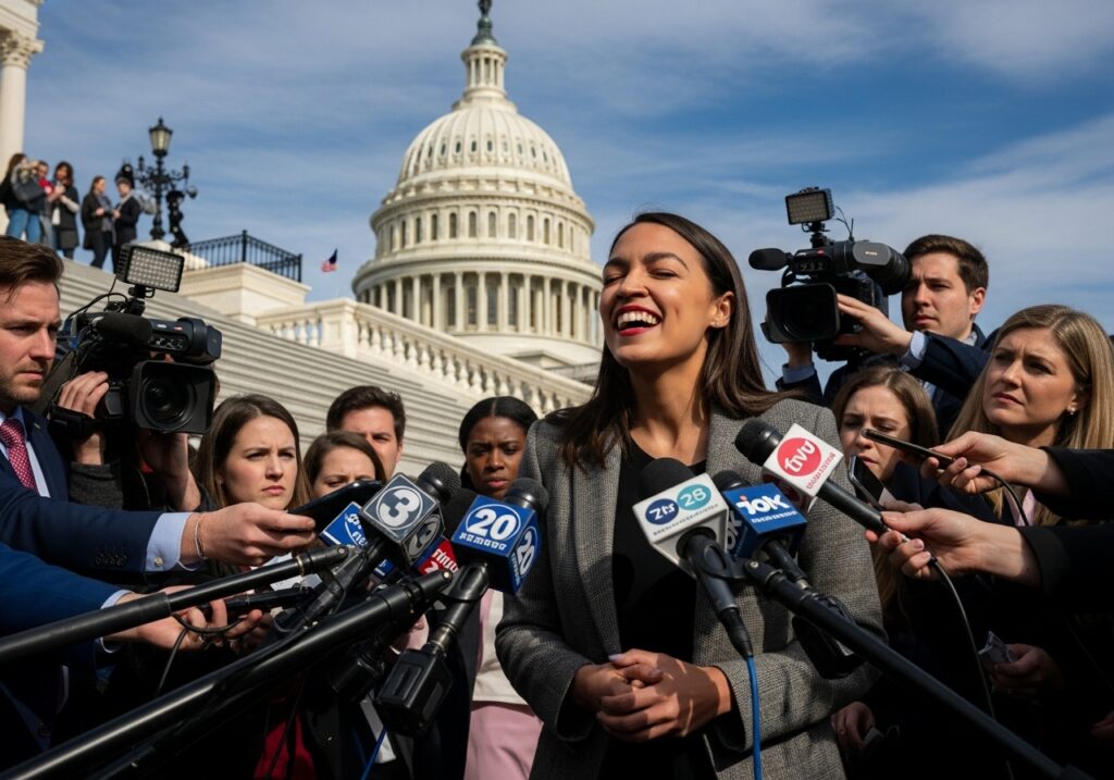 Alexandria Ocasio-Cortez is back in the spotlight, and this time she’s not just pushing socialism—she’s fantasizing about “stomping” JD Vance in a future presidential race. Because nothing screams “presidential” like a cackling congresswoman boasting on the Capitol steps.