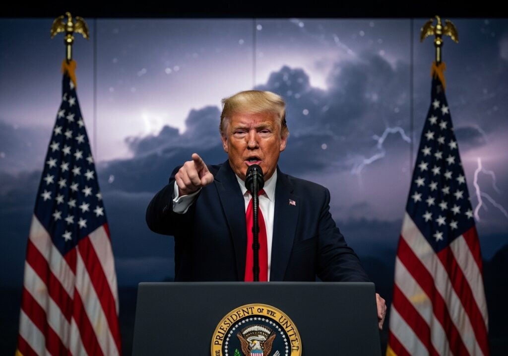 Mar-a-Lago. Sun shining. Reporters assembled like a suspicious flock of pigeons who’ve been burned one too many times by breadcrumbs. And Trump, in full late-term Emperor mode, surveys the room with the calm confidence of a man who has absolutely nothing to prove and every instinct to troll.