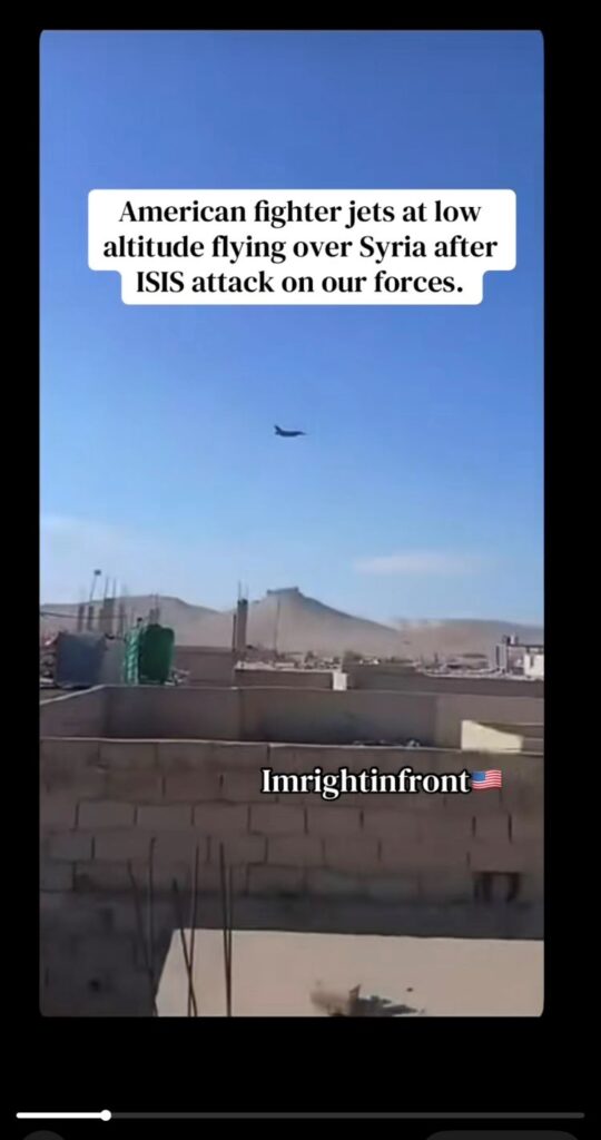 According to social media reports out of Syria, U.S. war planes are conducting shows of force over the city of Palmyra, Syria near where the attack took place. That was quick.
